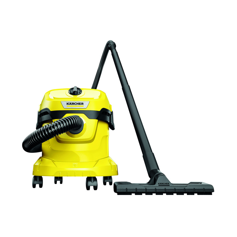 The powerful Karcher WD 2 Plus wet and dry vacuum cleaner for the jobs too tough for your everyday indoor vacuum. This robust machine stands up to the most stubborn dirt around your car, garage and garden, effortlessly switching between wet and dry pick-up for everything from dust to heavy rubble.This WD 2 has a 1000W motor, delivering extreme suction power that will achieve a perfect finish even on the toughest outdoor cleaning tasks. Whether you are tackling dust, glass or even liquids, the intelligent cartridge filter system means you can move seamlessly from one type of debris to another, saving time and efficient cleaning for any job. Includes a durable 12 litre plastic container, 1.8m suction hose, two suction tubes, a cartridge filter and a wet to dry floor tool. With onboard storage to keep all the kit together in one place.