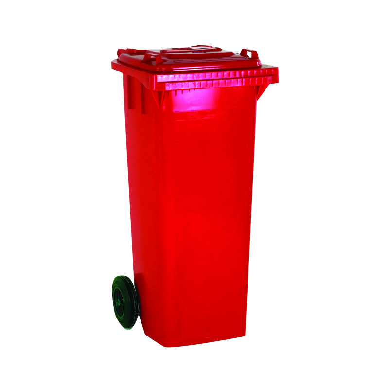 This tough and durable refuse container is made from UV stabilised polyethylene, which is weather-resistant and designed for long life. The lid and high quality plastic construction help keep odour contained and the 2 wheels provide easy manoeuvrability. This red refuse container has a capacity of 240 litres.