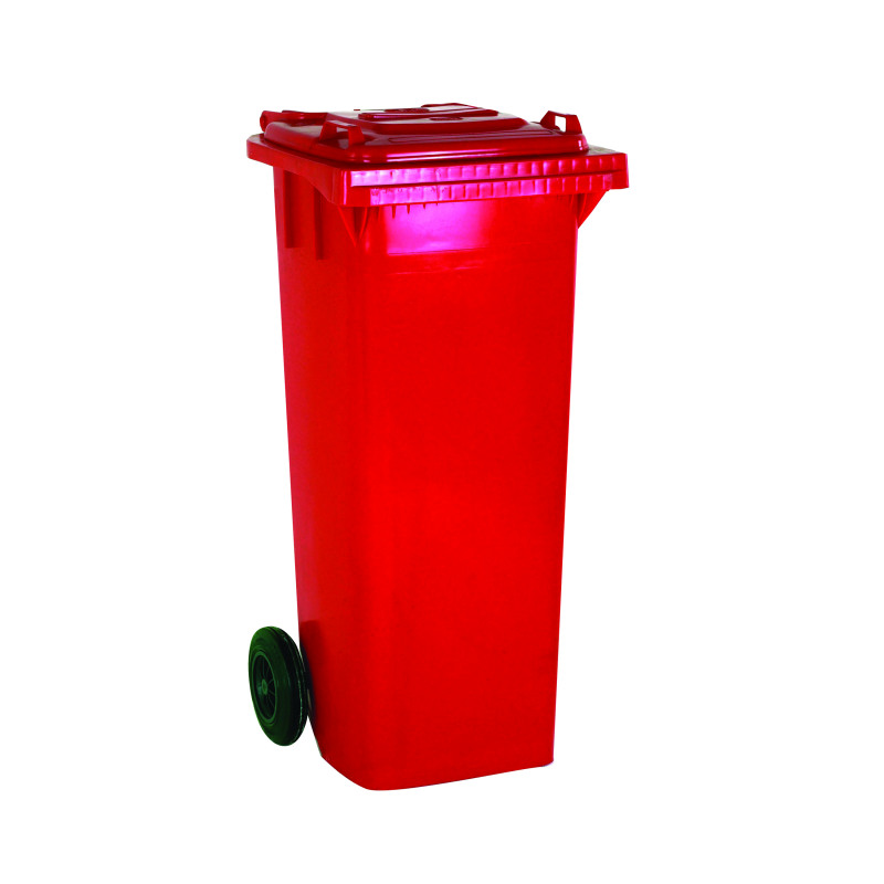 This tough and durable refuse container is made from UV stabilised polyethylene, which is weather-resistant and designed for long life. The lid and high quality plastic construction help keep odour contained and the 2 wheels provide easy manoeuvrability. This red refuse container has a capacity of 360 litres.